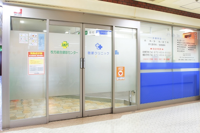 大阪市淀川区(阪急地下鉄西中島南方駅)と枚方(京阪枚方市駅)と淀川を隔てて2カ所の主要駅前にて予防診療を行い、「優良総合健診施設」「人間ドック健診専門医研修施設」にも認定されております。